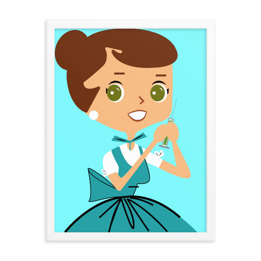18” x 24” Framed Retro Vibin’ Housewife Poster of Jab It Jessica, “Hold Still!”