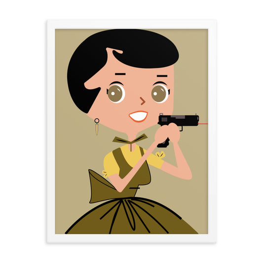 18” x 24” Framed Retro Vibin’ Housewife Poster of Pistol Pattie, “Make My Day!”