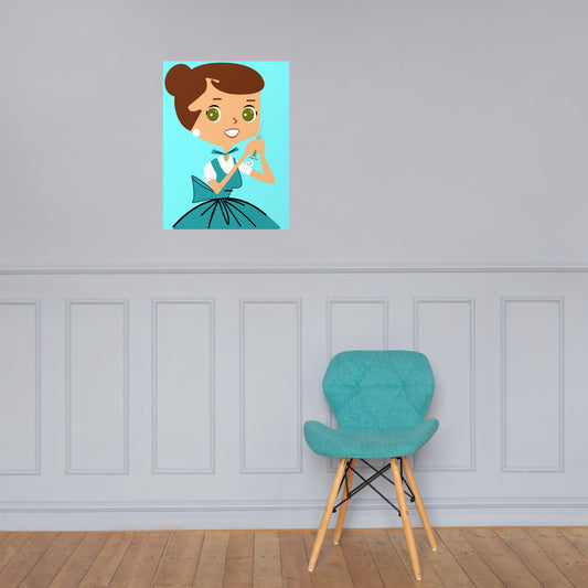 18” x 24” Vintage Inspired, Digitally Illustrated Character Art, Jab It Jessica “Hold Still!”Retro Poster