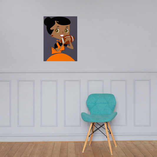 18” x 24” Vintage Inspired, Digitally Illustrated Character Art, Ballin’ Brianna ”Just Roll With It!”, Retro Poster