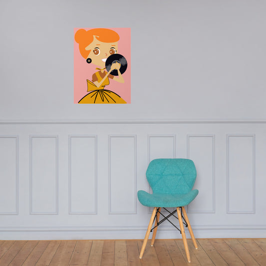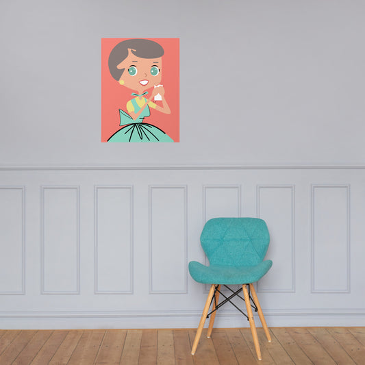 18” x 24” Vintage Inspired, Digitally Illustrated Character Art, Cheesy Carla “More Cheese Please!”, Retro Poster