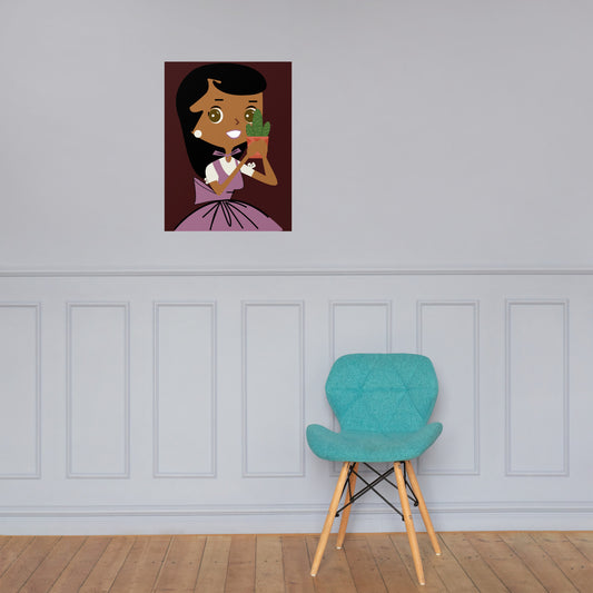 18” x 24” Vintage Inspired, Digitally Illustrated Character Art, Prickly Paula “I’m Just a Trying to Keep It Alive”, Retro Poster