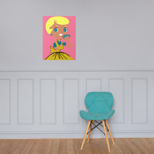 18” x 24” Vintage Inspired, Digitally Illustrated Character Art, Card Shark Carrie “I Got Five On It!”, Retro Poster