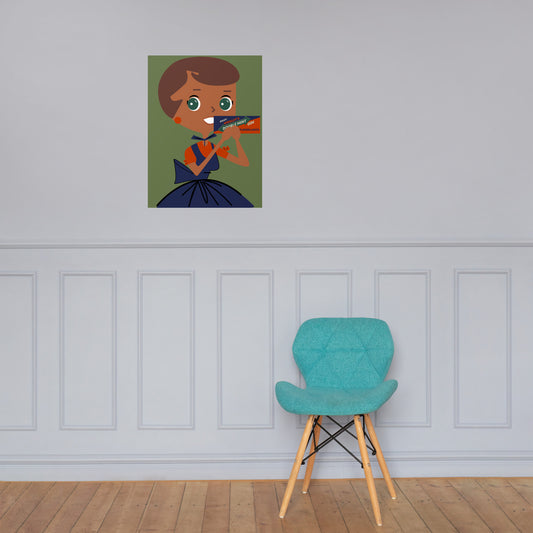 18” x 24” Vintage Inspired, Digitally Illustrated Character Art, Flick It Fannie “Go Deep!”, Retro Poster