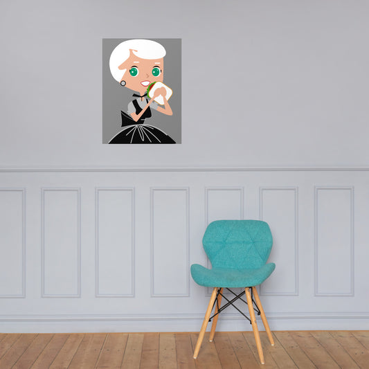 18” x 24” Vintage Inspired, Digitally Illustrated Character Art, Fancy Fergie “Mean Muggin’!”, Retro Poster