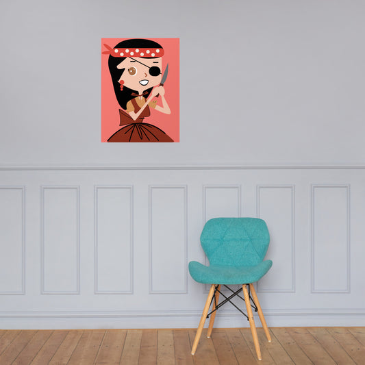 18” x 24” Vintage Inspired, Digitally Illustrated Character Art, Bandit Betty “You Can Call Me Patches!”, Retro Poster