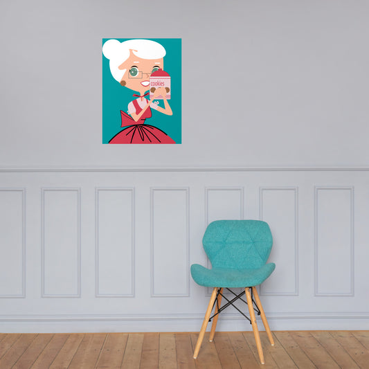18” x 24” Vintage Inspired, Digitally Illustrated Character Art, Nana Nancy “Everyone Hates My Oatmeal Raisin Cookies”, Retro Poster