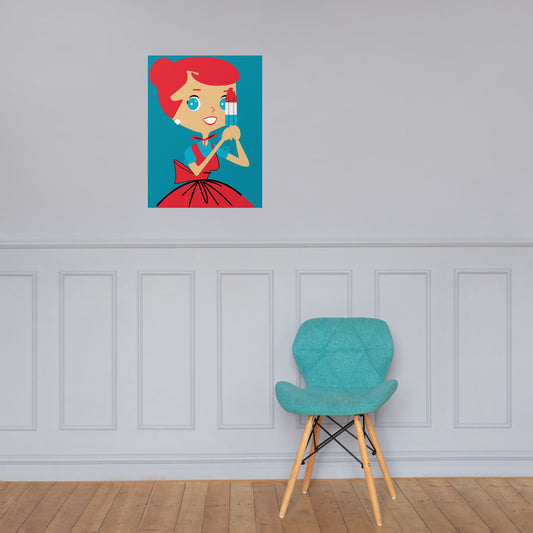 18” x 24” Vintage Inspired, Digitally Illustrated Character Art, Smarty Pants Sue “I’m Smarter Than You!”, Retro Poster